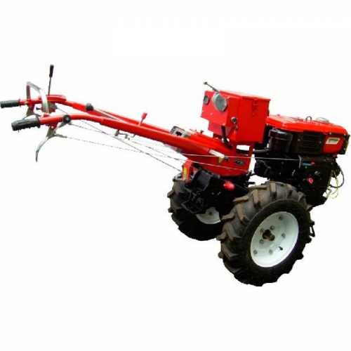 Большого диаметра колеса в сочетании с блокировкой дифференциала дают одновременно тяжелую по массе (что хорошо сказывается для работы на тяжелой почве), и невероятно легкую в управлении машину с отличной проходимостью. Масса мотоблока позволяет работать с плугом без дополнительного утяжеления. Также легко можно перевозить грузы с помощью прицепа. Большой выбор пониженных и повышенных передач полностью покрывает весь спектр возможных работ мотоблока. Задний шестеренчатый вал отбора мощности позволяет работать мотоблоку с новой активной почвофрезой увеличенного размера, перекрывающей колею колёс.