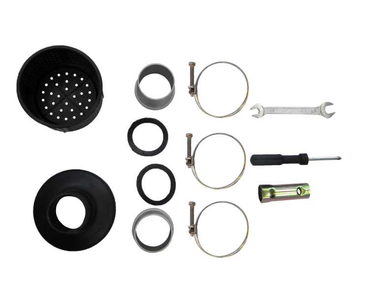 Мотопомпа, комплект хомутов, резиновые уплотнители, рожковый ключ, отвертка, накидной свечной ключ, фильтр, штуцер, инструкция, гарантийный талон.