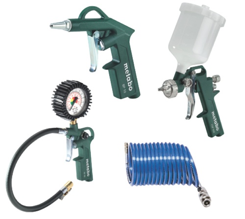 Универсальный набор Metabo LPZ 4 Set представляет собой весьма интересное решение для владельцев компрессорного оборудования, желающих получить сразу все необходимое для решения различных задач в бытовых и профессиональных условиях. Так, комплектующие набора позволяют выполнять необходимые операции, для которых потребуется оборудование, создающее рабочее давление 2-6 бар, с производительностью расхода воздуха 100-200 л/мин. Для подключения принадлежностей, в комплект включен спиральный шланг высокого давления, длиной 5 метров.