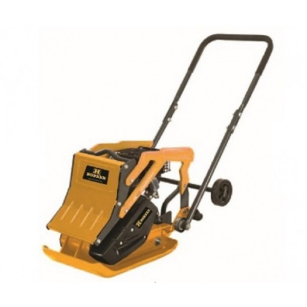 Бензиновая виброплита Honker 29465 с двигателем LONCIN 196 cc, 6.5HP оснащена защитной рамой, транспортировочными колёсами для перемещения, складной ручкой для удобной транспортировки. Основание виброплиты имеет загнутые края, что позволяет избежать полос при уплотнении асфальта, изготовлено из высокопрочной стали.